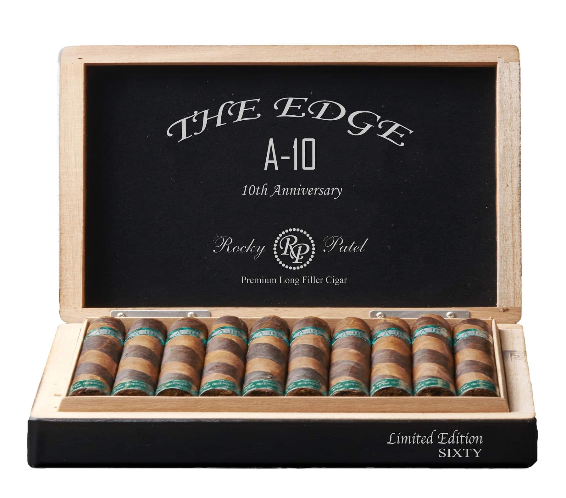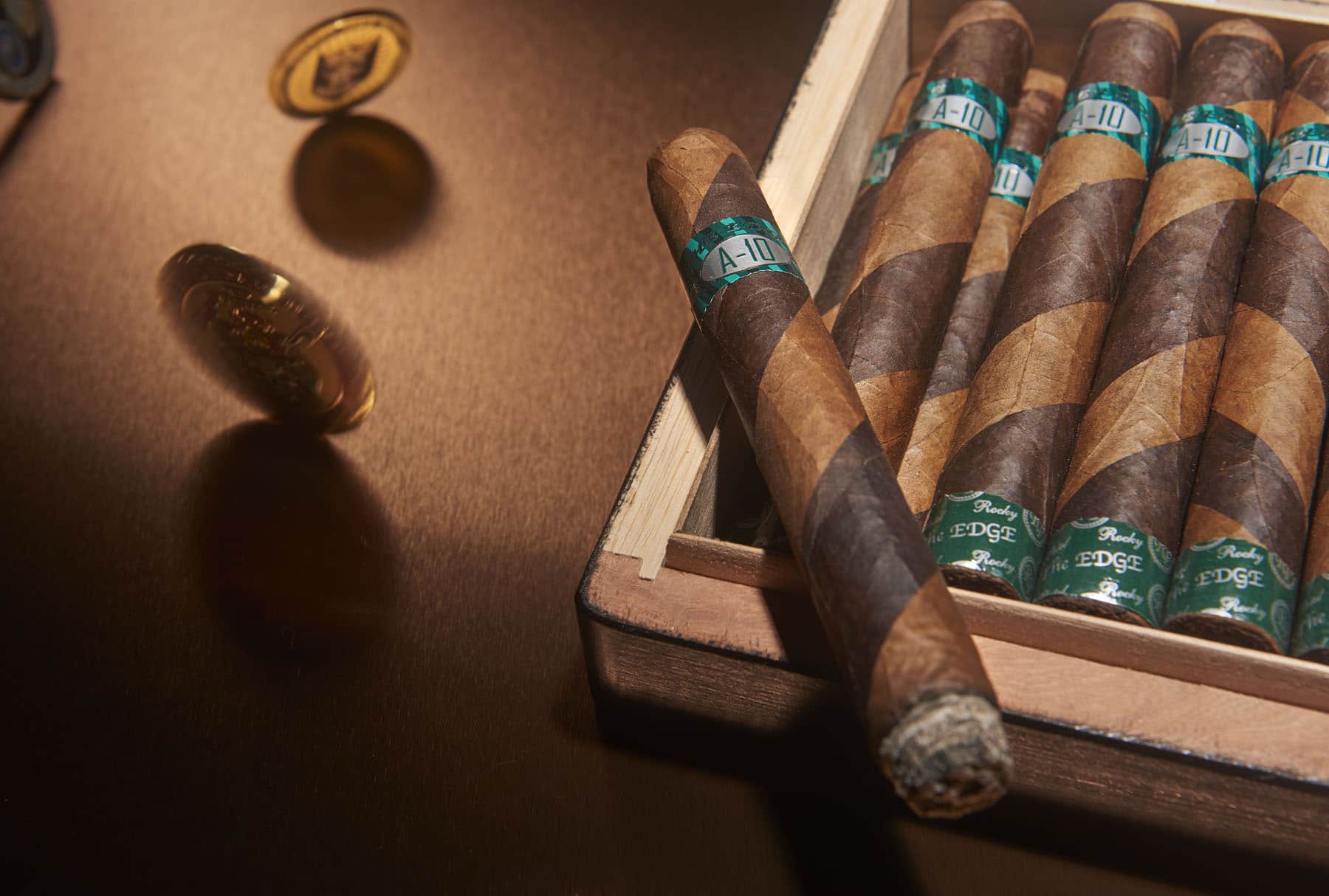 The Edge A-10 celebrates the 10-year anniversary of the original Edge brands by combining the Corojo and Maduro wrappers in a unique barber pole-style combination. The Edge A-10 was originally released as a ‘limited edition’ run to remind faithful Edge lovers that the brand’s history lives on, but the overwhelming demand for this special cigar convinced Rocky to live on the edge and keep the A-10 permanently.