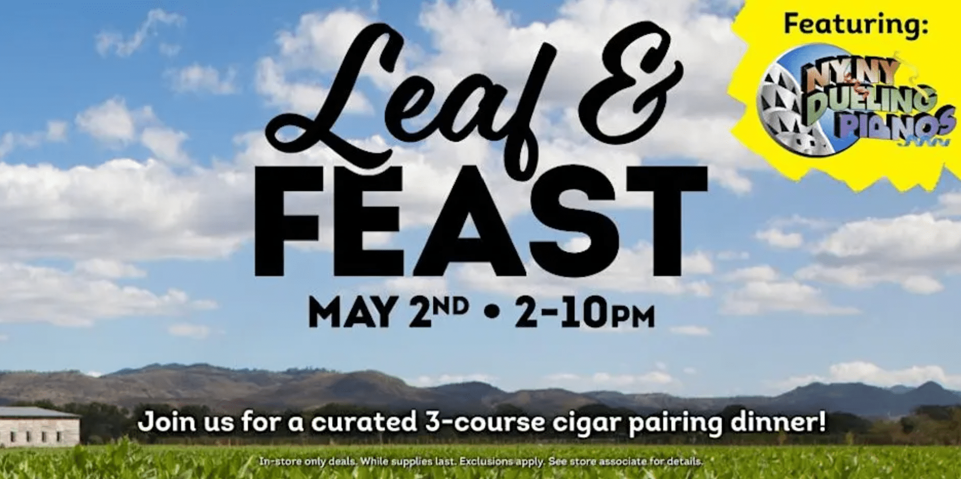 The Leaf & Feast Experience at Cigars International Hamburg By Cigars International Cigars International Superstore Hamburg, PA Saturday, May 2 from 6 pm to 10 pm Curated 3-course cigar pairing dinner with live entertainment. Cigar vendors on-site. The Leaf & Feast Experience at Cigars International Hamburg: Curated 3-course cigar pairing dinner with live entertainment. Cigar…
